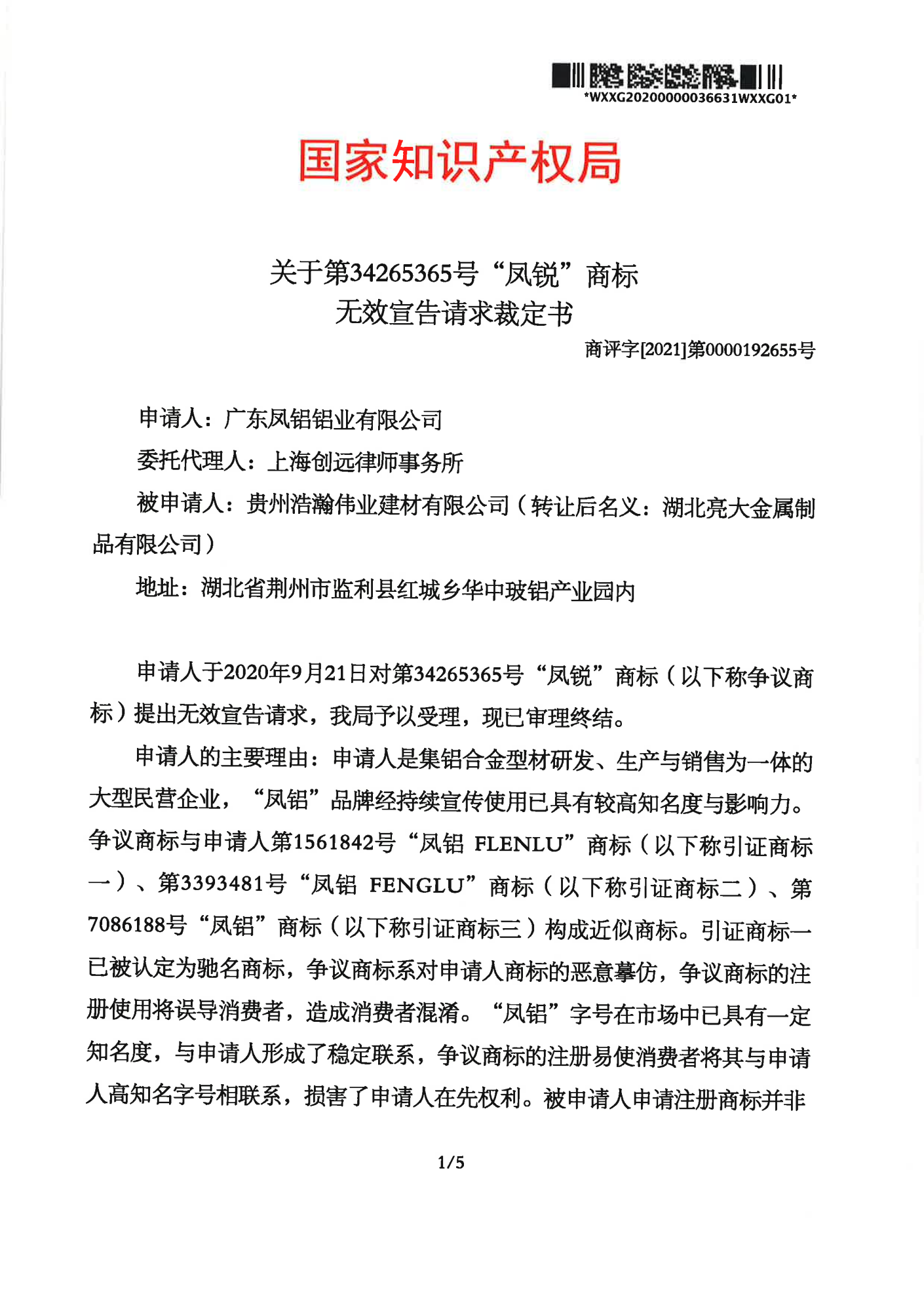 沈阳辉知队 | 国家知识产权局:“凤锐”商标无效